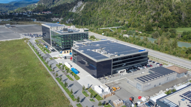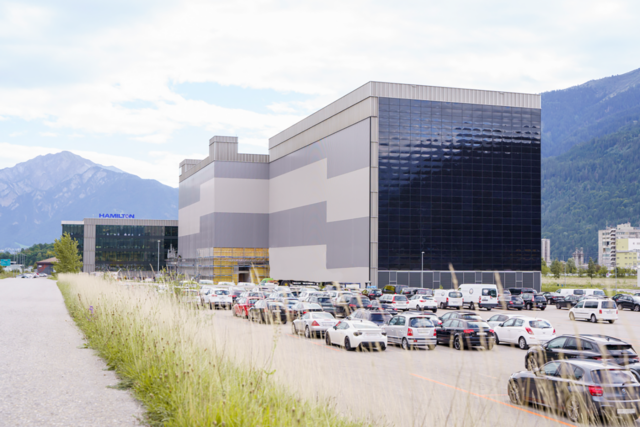 Hamilton 2.0 setzt neue Standards: Das grösste Industriegebäude der Schweiz mit einer Minergie-P-Zertifizierung ist seit 2023 in Betrieb. Nicht nur auf der gesamten Fläche des Daches, sondern auch an der Ost-, Süd- und Westfassade wurden grosse PV-Anlagen installiert. Durch die PV-Anlagen an den Fassaden profitieren wir auch im Winter von der tiefliegenden Sonne: