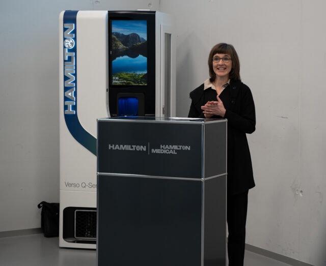 Die zweite Plakette wurde von Dr. Gianina Viglino-Caviezel, Geschäftsführerin der Hamilton Services und CFO der Hamilton-Unternehmen, an den Beton geschraubt. Die konsequente Ausrichtung auf eine nachhaltigere Zukunft sei ein strategischer Entscheid, so Viglino-Caviezel. «Hamilton steht seit der Gründung für Innovation. Dies prägt die nachhaltige Ausrichtung unseres Unternehmens weltweit. Die globalen Herausforderungen sind gewaltig, doch gleichzeitig bieten Technologien und Innovationen so viel Potential wie nie zuvor, um genau diese Herausforderungen zu meistern.» Viglino-Caviezel sprach damit die vielen modernen Technologien an, die bei Hamilton 2.0 zum Einsatz kommen.