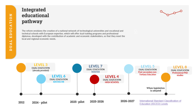 Consorțiul Regional pentru Învățământ Dual Vest Timișoara, din care facem și noi parte, și-a asumat misiunea de a dezvolta în următorii ani cât mai multe programe de educație în sistem dual, în colaborare cu companiile din regiune. Acum, ne bucurăm de o ofertă variată la nivel preuniversitar, prin programele dezvoltate de cele 7 licee partenere și de un program pilot de licență, Robotică-dual, dezvoltat de Universitatea Politehnica Timișoara. Se lucrează acum la acreditarea unor noi specializări, inclusiv de master, după cum ne-au declarat Rectorul Universității Politehnica Timișoara (lider de proiect), Florin Drăgan și coordonatorul proiectului de consorțiu, Dan Diaconu.