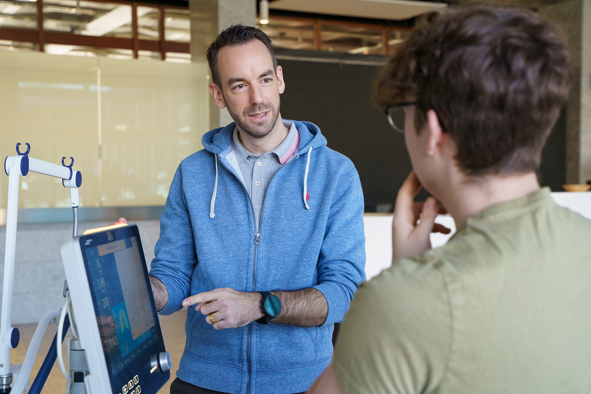 Adrian ist ein Senkrechtstarter. Bereits während seines Studiums, arbeitet er zu 60 Prozent auf seinem Fachgebiet im Entwicklungsteam von Hamilton Medical. Wenn er sein Studium beendet, wird er bereits vier Jahre Berufserfahrung aufweisen können. «Ich kann das theoretische Fachwissen hier praktisch anwenden. Und was mich besonders motiviert: ich arbeite bei Hamilton Medical an einem konkreten Use Case», erzählt Adrian über die Vorzüge des Programms. Bei Hamilton Medical arbeitet der Appenzell Ausserrhodner an der Weiterentwicklung der Software der Beatmungsgeräte. Konkret automatisiert Adrian im Team die Tests von neuer Software oder neuen Features der Software.