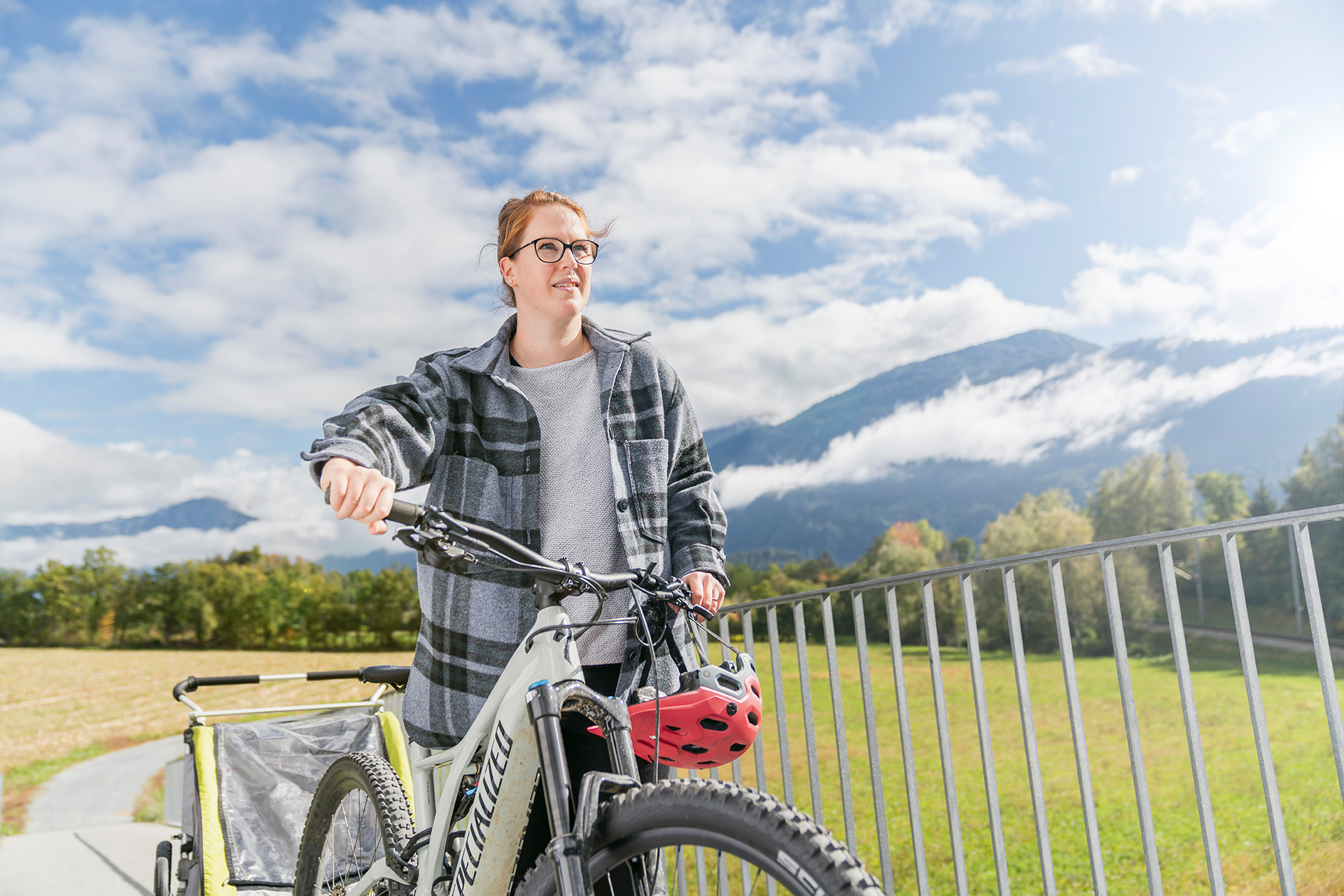 Es ist 8.00 Uhr morgens. Romana Feurer fährt mit ihrem E-Bike und ihren zwei Töchtern im Kinderanhänger über die hügelige Landschaft vor Bonaduz. Es ist eine idyllische Szenerie. Die Töchter singt vor sich hin und geniessen gleichzeitig die vorbeiziehende Landschaft. Links von ihr schimmert in der Ferne der Churer Hausberg Montalin zwischen den Wolken hervor. Rechts fährt ein Bauer seine Ernte ein. Ab und zu rast ein Fahrradfahrer auf sie zu und an ihr vorbei. «Meine Töchtern lieben es, im Anhänger zu sein und finden es richtig cool, mit mir von Tamins nach Bonaduz zu fahren.» Für Romana selbst ist die morgendliche Fahrt ein gutes Aufwärmen und Kopflüften vor der Arbeit.